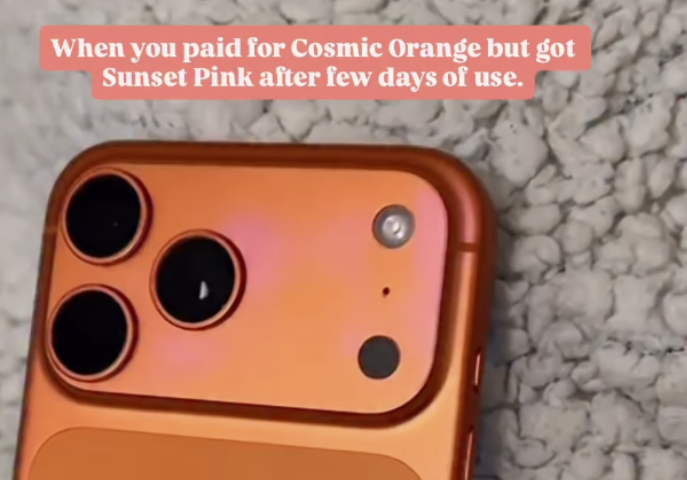 애플이 새롭게 선보인 아이폰17 프로 색상 '코스믹 오렌지'에서 변색 현상이 발생했다는 사용자 후기가 이어지며 논란이 되고 있다.