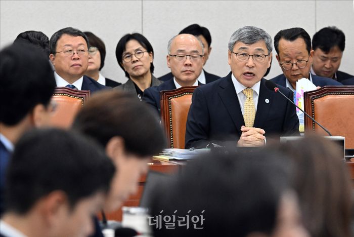 정근식 서울시교육감이 20일 서울 여의도 국회에서 열린 국회 교육위원회의 서울·경기·인천 교육청 등에 대한 2025 국정감사에서 질의에 답변하고 있다.
