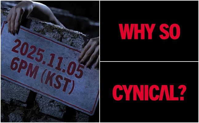 먼저 티저 포스터에서는 빈티지한 컬러의 네일을 한 손으로 앨범 발표 일시를 의미하는 ‘2025.11.05 6PM (KST)’ 간판을 들고 담벼락에 위태롭게 매달린 듯한 느낌과 함께 귀에 강렬하게 꽂히는 시니컬한 웃음 소리가 들어가 단숨에 이목을 집중시킨다.