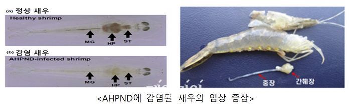AHPND에 감염된 새우의 임상 증상.ⓒ해양수산부