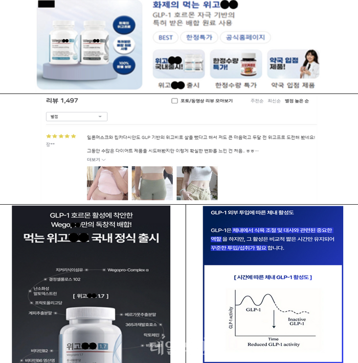 이 가운데 한 업체는 치커리 성분의 고형차를 ‘위고◯◯’으로 판매하며 ‘GLP-1 효과’와 ‘약국 입점 제품’ 등 문구로 소비자를 속였다. 또 다른 업체들은 ‘마운프로’, ‘위비고’ 등 이름을 붙여 의약품을 연상시키는 방식으로 마케팅 경쟁을 벌였다.