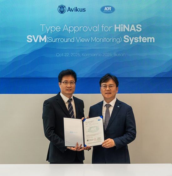 KR(한국선급, 회장 이형철)은 부산에서 열리는 ‘코마린 2025(KORMARINE 2025)’에서 HD현대그룹 자회사인 아비커스(Avikus)가 개발한 항해보조시스템 ‘하이나스 SVM’에 대해 세계 최초로 형식승인을 수여했다고 22일 밝혔다.