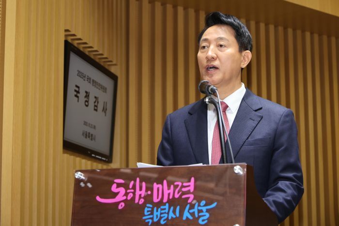 오세훈 서울시장이 23일 오전 서울시청에서 열린 국회 행정안전위원회 국정감사에서 발언하고 있다. (공동취재) ⓒ뉴시스