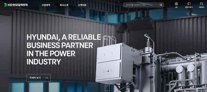 HD현대일렉트릭 홈페이지. HD현대일렉트릭 홈페이지 캡처