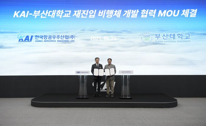 한국항공우주산업(KAI)은 23일 부산대학교와 ‘우주모빌리티 사업화를 위한 재진입 비행체 개발 기술협력’을 위한 업무협약(MOU)을 체결했다고 밝혔다.