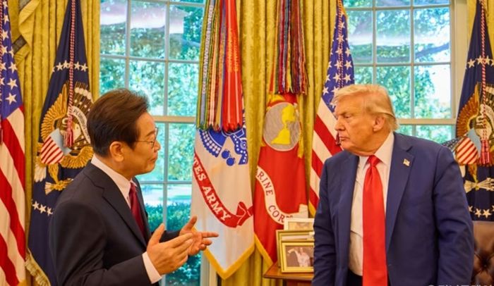이재명(왼쪽) 대통령이 지난 8월25일 미 워싱턴DC 백악관에서 열린 한·미 정상회담을 마치고 도널드 트럼프 미국 대통령과 대화를 하고 있다. ⓒ 뉴시스