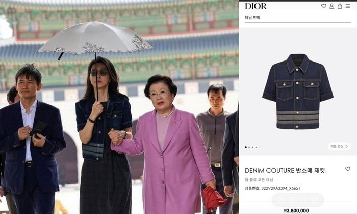 특히 당시 김건희 여사가 입은 상의는 명품 브랜드 크리스티앙 디오르(크리스챤 디올) 제품으로, 그해 봄·여름 컬렉션으로 발매된 반소매 데님 재킷이다. 판매 가격은 380만원으로 알려져 있다.