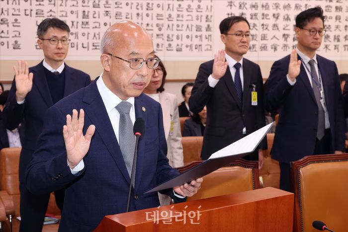 조원철 법제처장이 24일 서울 여의도 국회에서 열린 국회 법제사법위원회의 법제처에 대한 2025 국정감사에서 증인선서를 하고 있다.