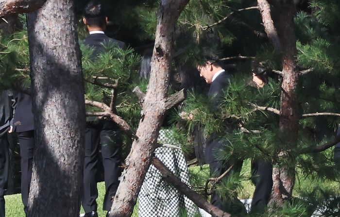 이 회장과 홍 전 관장은 오전 10시 47분께 검은색 세단을 타고 선영에 도착했다. 이보다 앞서 10시 39분 이부진·이서현 사장이 먼저 도착했다. 유족들은 약 20분간 대화를 나눈 뒤 조용히 헌화와 분향을 마쳤다. 11시 10분께 각자의 차량을 타고 선영을 나섰다.