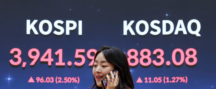 24일 한국거래소에 따르면 코스피지수는 전 거래일 대비 96.03포인트(2.50%) 오른 3941.59에 거래를 마쳤다. 이는 종가 기준 사상 최고치다.