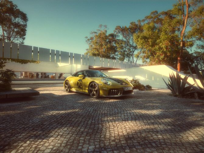 ‘올리브 네오’ 컬러와 실크 글로스 블랙 스트라이프, 고전적 파샤 패브릭 인테리어가 조화를 이룬다. 3.6리터 박서 엔진과 하이브리드 시스템을 결합해 최고출력 541마력, 최대토크 62.2kg·m를 발휘하며 포르쉐 최초의 일렉트릭 터보차저와 새 PDK 변속기를 적용했다.