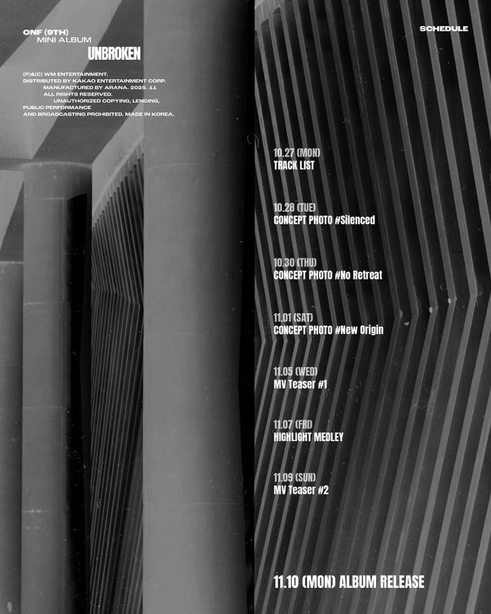 온앤오프의 소속사 WM엔터테인먼트는 25일 0시 공식 계정을 통해 미니 9집 앨범 ‘언브로큰’(UNBROKEN)의 타임테이블을 공개했다.