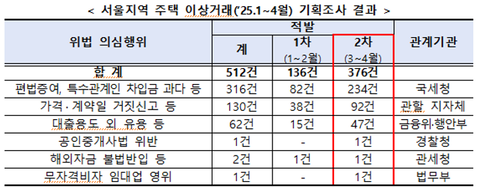 올해 1~4월 서울지역 주택 이상거래 기획조사 결과.ⓒ국토교통부