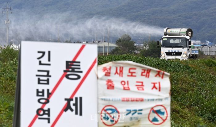 경기도 용인시 백암면 청미천 일대에서 방역차량이 방역작업을 하고 있다. ⓒ뉴시스