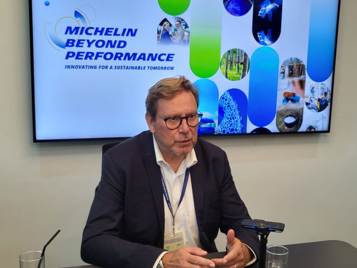 마누엘 파피앙 미쉐린 총괄 사장이 22일(현지시간) 태국 농캐 공장에서 진행된 미디어 인터뷰에서 기자들의 질문에 답하고 있다. ⓒ미쉐린코리아 기자단