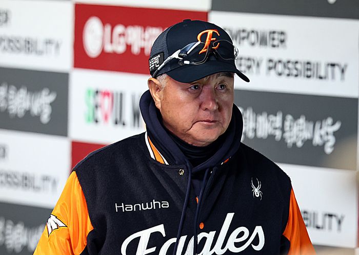 27일 잠실야구장에서 열린 2025 KBO 한국시리즈 2차전 한화 이글스와 LG 트윈스의 경기서 한화 김경문 감독이 생각에 잠겨 있다. ⓒ 뉴시스