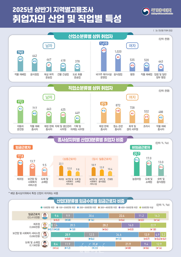 2025년 상반기 지역별 고용 조사 취업자의 산업 및 직업별 특성. ⓒ국가데이터처