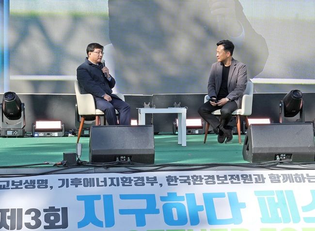한국환경보전원이 주관한 '제3회 지구하다 페스티벌'에서 김성환 기후에너지환경부 장관(왼쪽)이 토크콘서트를 하고 있다. ⓒ한국환경보전원