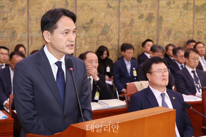 황성운 문화체육관광부 기조실장(윤석열 정부 당시 대통령실 문화체육비서관)이 29일 서울 여의도 국회에서 열린 국회 문화체육관광위원회의 2025 종합 국정감사에서 질의에 답변하고 있다.