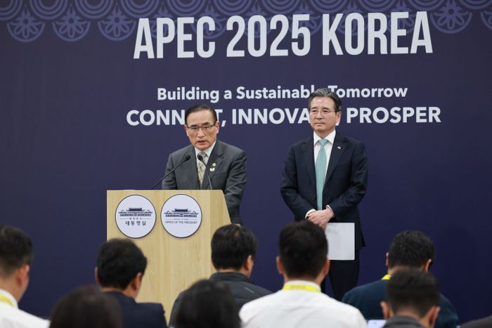 위성락 국가안보실장이 29일 경북 경주 국제미디어센터에서 한미 정상회담 관련 브리핑을 하고 있다.ⓒ뉴시스
