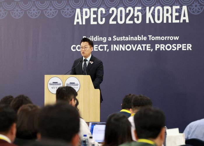 김남준 대변인이 30일 경북 경주 국제미디어센터(IMC) 중앙기자실에서 한-캐나다 정상회담 관련 브리핑을 하고 있다.ⓒ뉴시스