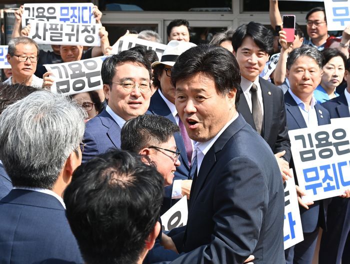 더불어민주당이 정치자금법 위반 혐의 등으로 2심에서 실형을 선고 받고 법정구속됐다가 보석 석방된 김용 전 민주연구원 부원장을 "무죄취지로 파기환송하라"며 대법원을 압박하고 있다. 정치권과 법조계 일각에서는 여당이 김 전 부원장의 '정계 진출에 초석을 깔고 있다' '결국 이재명 대통령의 대장동 사건 공소를 취소시키기 위한 포석'이라는 분석이다.