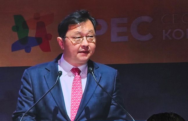 최재원 SK그룹 수석부회장이 31일 경북 경주 예술의전당에서 열린 APEC CEO서밋 ‘아시아 퍼시픽LNG커넥트’ 세션에서 대표 연설을 하고 있다.ⓒ데일리안 백서원 기자