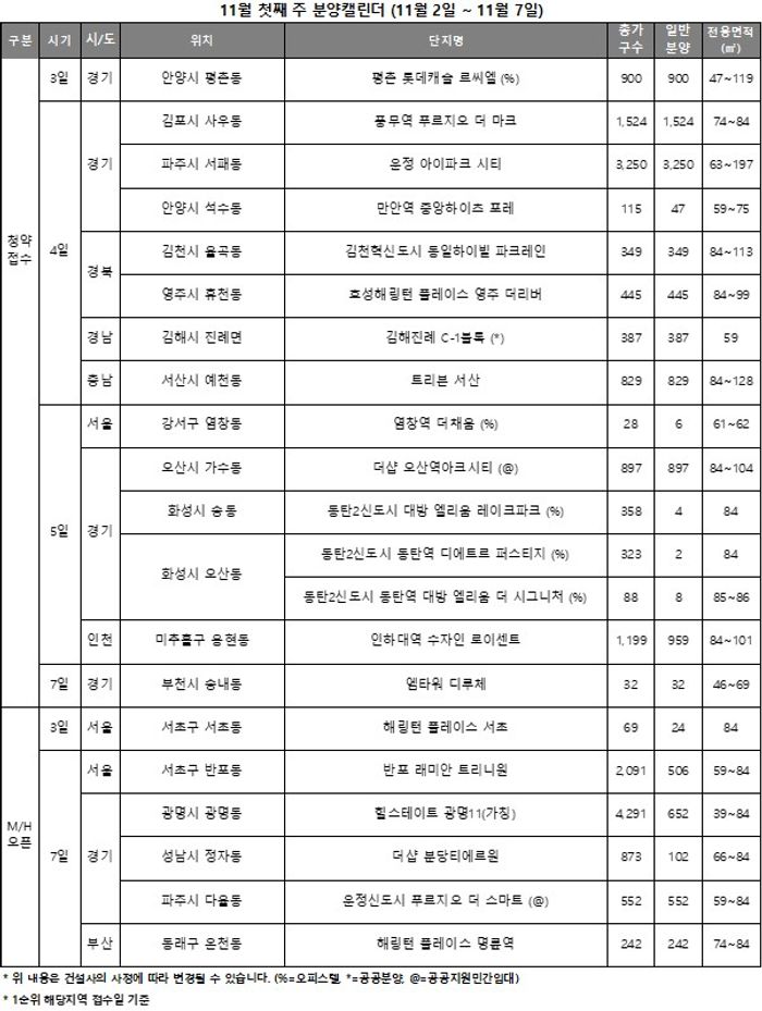 11월 첫 주에는 1만가구가량 대규모 공급이 이뤄진다.