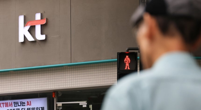 한 시민이 서울의 한 KT 판매점 앞을 지나고 있다.ⓒ연합뉴스