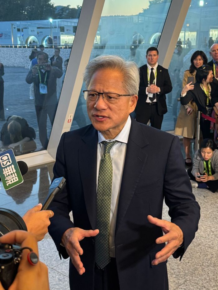 젠슨 황 엔비디아 최고경영자(CEO)가 31일 아시아·태평양경제협력체(APEC) 회의가 열리고 있는 경상북도 경주에서 기자들과 만나 질의응답하고 있다.ⓒ데일리안 정인혁 기자