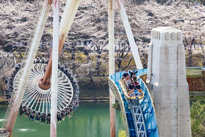 벚꽃이 활짝 핀 지난 4월 7일 서울 송파구 롯데월드를 찾은 시민들이 놀이기구를 타며 즐거운 시간을 보내고 있다. 사진과 본문은 무관. ⓒ 뉴시스