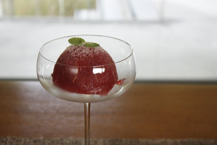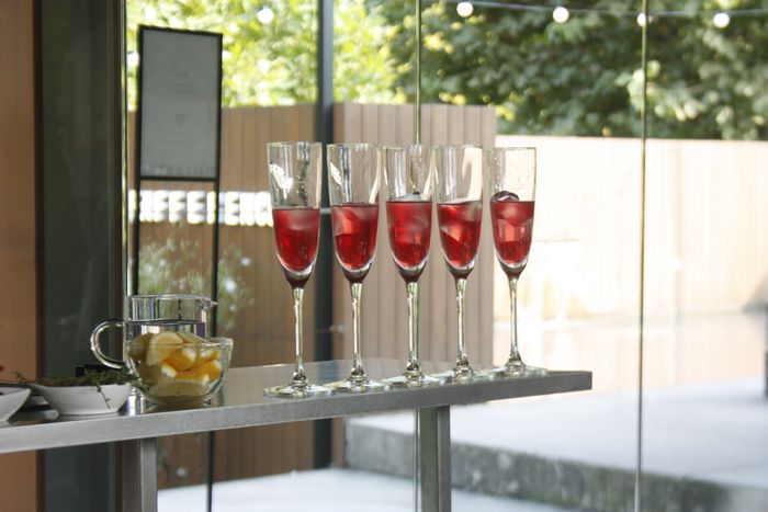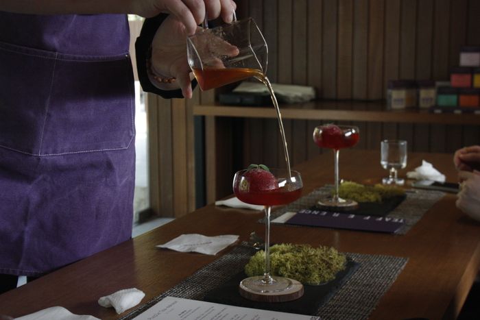 두 번째는 칵테일 메뉴가 제공됐다. 바닐라 퍼플티 블렌드와 사과 과육 그리고 앱솔루트 보드카를 블렌딩해 만든 티가 라즈베리와 석류로 만들어진 사과 모양의 오름 위에 흩뿌려졌다. 이렇게 만들어진 음료는 알코올이 들어갔다고 믿기지 않을 정도의 새콤달콤한 맛이 입맛을 확 돋웠다.