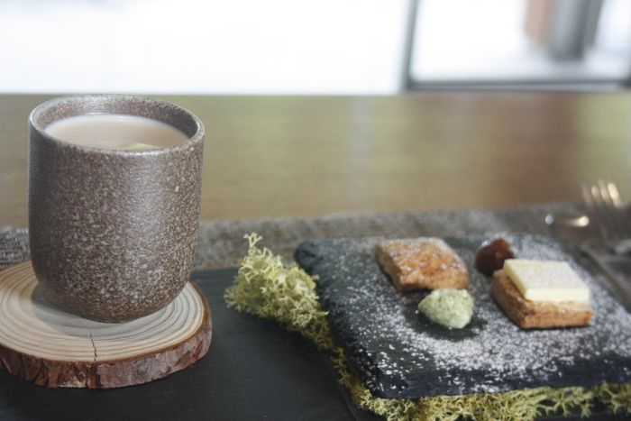 첫 번째 코스는 당첨가물을 일절 넣지 않은 유자 퍼플티 블렌드로 만든 밀크티와 직접 구운 스콘으로 구성됐다. 밀크티는 유자와 레몬그라스, 퍼플티가 어우러져 은은하고 자연스러운 단맛을 냈다.
