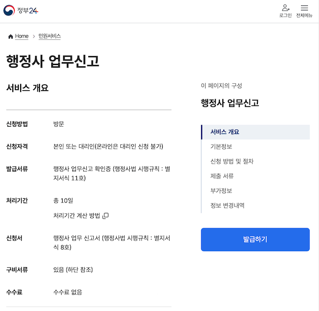 정부24 행정사 업무신고 화면 ⓒ정부24 캡처