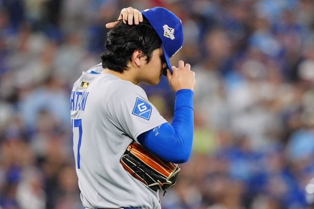 지난달 29일 월드시리즈 4차전에 선발 등판, 6이닝(투구수 93) 6피안타(1피홈런) 6탈삼진 1볼넷 4실점으로 패전투수가 됐던 오타니는 3일 휴식 후 또 마운드에 올랐다. 체력적으로 지친 상태에서 월드시리즈 7차전 선발이라는 특명을 받고 공을 뿌렸지만 오래 버티지 못했다.