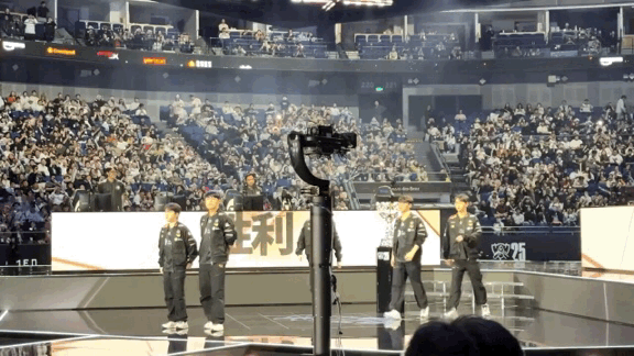 T1 선수들이 2일 중국 상하이 메르세데스-벤츠 아레나에서 열린 2025 리그 오브 레전드 월드 챔피언십(롤드컵) 4강전에서 TES에 3대 0으로 승리한 뒤 관객들의 환호에 답하고 있다. ⓒ데일리안 황지현 기자