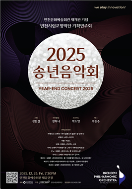 한편 인천시립교향악단 기획연주회 2025 송년음악회는 전석 1만 원으로, 인천문화예술회관과 아트센터인천 누리집, 엔티켓 및 NOL 티켓에서 예약이 가능하다.