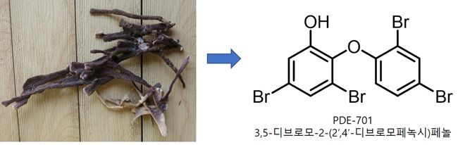 PDE701 분리에 사용된 해면과 화학구조. ⓒ한국해양과학기술원