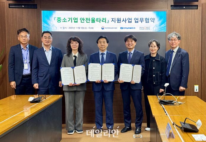 남부발전은 5일 부산 본사에서 부산지방중소벤처기업청, INNOBIZ 부산울산지회와 '중소기업 안전울타리 지원사업' 관련 업무협약(MOU)을 체결했다.
