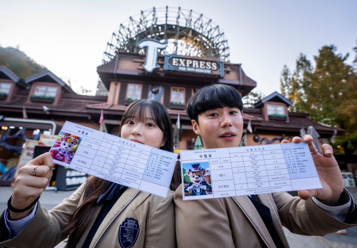 6일 삼성물산 에버랜드 측에 따르면, 수능 다음날인 14일부터 11월 30일까지는 수험생 우대 혜택을 받고 입장하는 방문객 선착순 400명에게 ‘수능 응원 부적 카드’가 제공된다. 카드 뒷면에 있는 QR코드를 통해 에버랜드에서 현금처럼 사용할 수 있는 ‘솜포인트’를 최대 5만 포인트까지 받을 수 있는 룰렛 이벤트와 정기권·뷰티·배달상품권 등 경품 응모 기회도 제공된다.