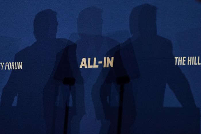 지난 7월 미국 워싱턴의 앤드류 W. 멜론 강당에서 열린 '인공지능 정상회의(AI summit)'에서 도널드 트럼프 대통령이 연설하는 그림자가 배경에 드리워져 있다(자료사진). ⓒAP/뉴시스
