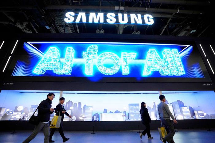 지난 2024년 미국 라스베이거스에서 열린 CES의 삼성관에서 모두를 위한 AI(AI for All)이라는 문구가 화면에 표출되고 있다(자료사진). ⓒAP/뉴시스