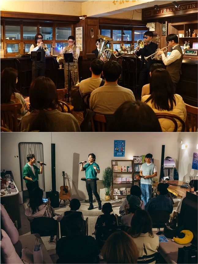 가든파이브 내 카페 비트윈에서는 핸드팬 연주자 Mind to 0의 ‘Handpan Soundscape’와 루프스테이션을 활용한 카키마젬의 ‘Audience Choir’, 그리고 마임과 마술을 결합한 서기석의 ‘마술 한 스푼, 마임 한 꼬집’이 이어진다.