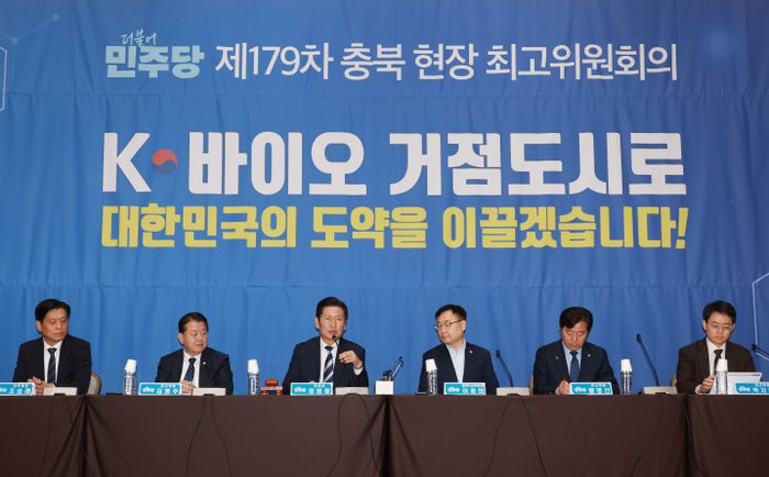 정청래 대표는 7일 충북 청주 오스코에서 열린 현장 최고위원회의에서 "이재명 대통령은 두 달 전 K바이오 5대 강국 도약 전략을 발표했다"며 "내년 연구개발(R&D) 예산을 사상 최대 규모인 35조 3000억원으로 확대했다. 정부의 계획에 맞춰 목표 달성을 반드시 이뤄낼 수 있도록 당이 적극 뒷받침 하겠다"고 밝혔다.