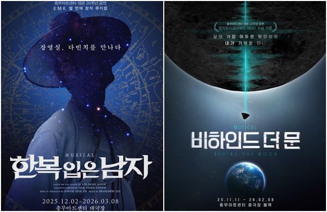 특히 한국적 미감과 서사를 활용한 신작들이 눈에 띈다. 조선의 과학자 장영실의 삶과 죽음을 둘러싼 미스터리를 현대적으로 풀어낸 ‘한복 입은 남자’(12월 2일 충무아트센터 대극장), 조선시대에도 웨딩 플래너가 있었다는 상상에서 출발한 작품 ‘청사초롱 불밝혀라’(11월 19일 국립정동극장), 인류 최초의 유인 달 탐사선인 아폴로 11호에 탑승했던 세 명의 우주인 중 한 명인 마이클 콜린스의 이야기를 1인극 형식으로 담은 ‘비하인드 더 문’(11월 11일 충무아트센터 중극장 블랙) 등이 개막한다.