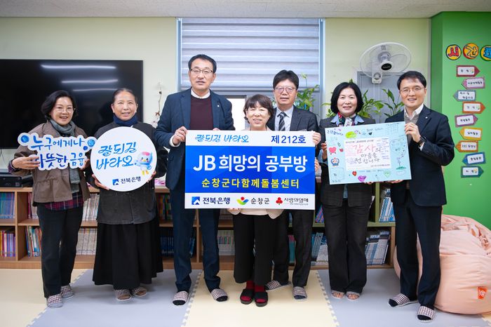 JB금융그룹 전북은행은 순창군 순창읍 소재 순창군다함께돌봄센터에서 'JB희망의 공부방 제212호'을 열었다고 7일 밝혔다.