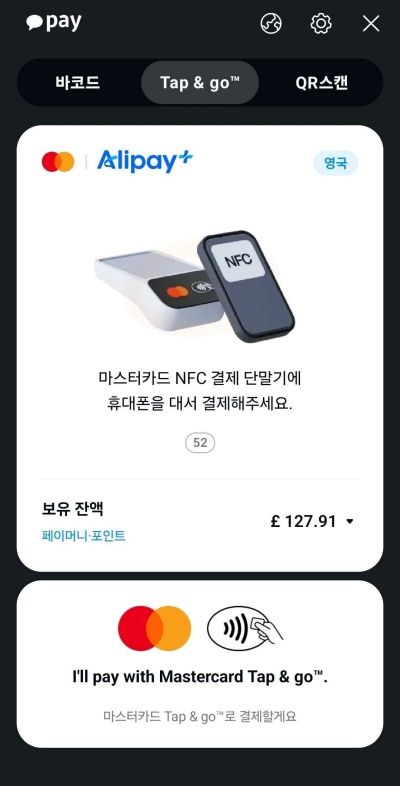 카카오페이 앱에서 NFC 결제시 나타나는 화면. ⓒ카카오페이