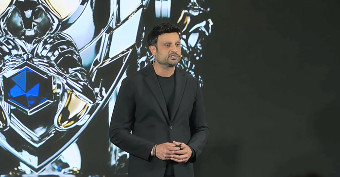 딜런 자데자 라이엇 게임즈 최고경영자(CEO)가 7일 중국 청두에서 열린 2025 롤드컵 결승 미디어데이에서 발언을 하고 있다. 라이엇 게임즈 온라인 중계 캡처.