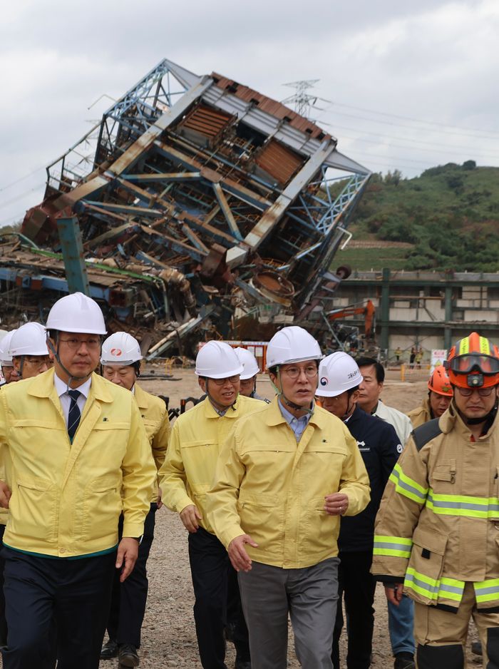 김민석 국무총리가 울산 화력발전소 보일러 타워 붕괴 사고 현장을 찾았다.