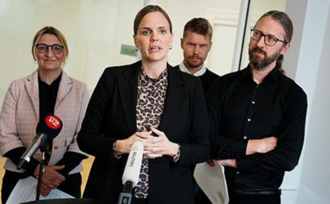 8일 카롤리네 스테에 덴마크 디지털부 장관이 코펜하겐에서 기자회견을 하고 있다. ⓒ로이터/연합뉴스